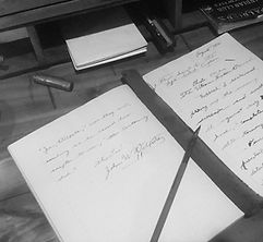 Figure 3. - A rare glimpse of original manuscript pages contained in one of my von Stray casefiles where I document the famous detective's amazing exploits in the fight against crime. This photograph--kindness of Inspsector Stephen Renyalds of Scotland Yard--features on the left, the ending of a published von Stray adventure, and on the right, the beginning of what proved to be one of our more difficult riddles, The Secret of the Left-Sided Cipher. After much shilly shallying by the Crown, I am delighted to report that we have at long last, received authorization from the proper authority to publish this amazing narrative with our prestigious American publishers Level Best Books. Release - March 2026. --Prof. John W. Dilpate
